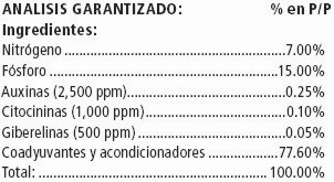 GARANTIA: Fabricante y vendedor se responsabilizan por la efectividad del producto o la devolución de su costo si su uso y aplicación son de acuerdo a las recomendaciones aquí dadas. No se responsabiliza por envases deteriorados fuera del control del fabricante.